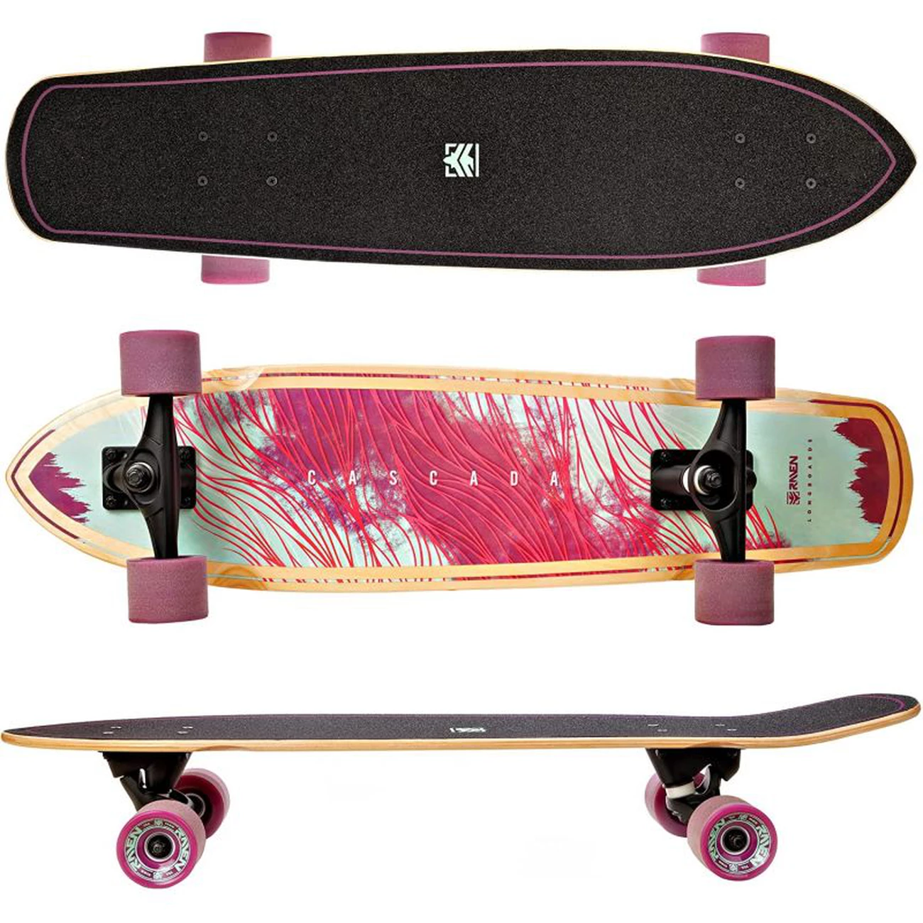 Le longboard Cascada de RAVEN à été conçu pour les virages serrés et le slalom. Capable de faire des virages même a grande vitesse grâce aux bords tranchants des roues et aux Trucks souples donnant la sensation de surfer sur le bitume !