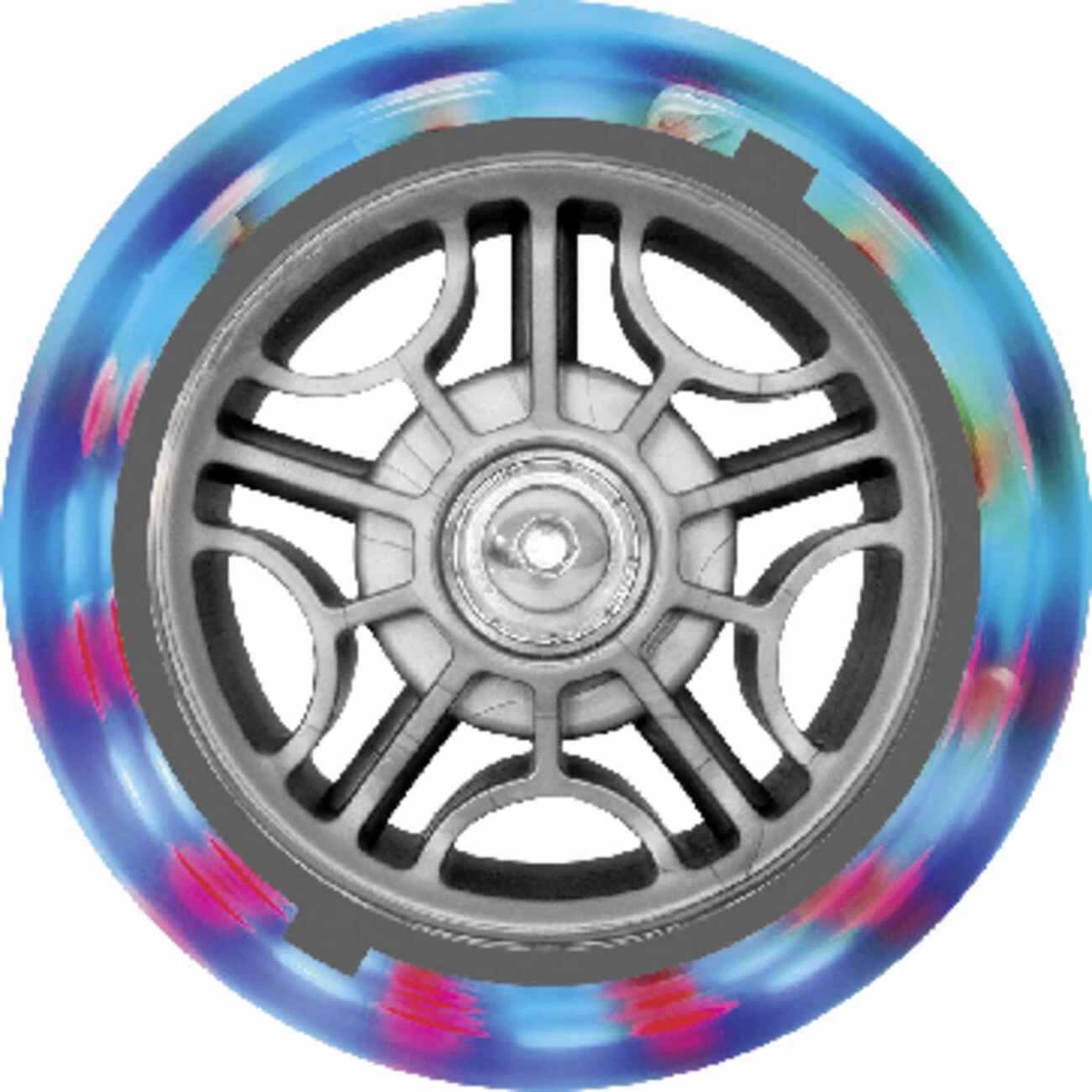 Un set de 2 roues lumineuses à LEDs fonctionnant par dynamo (sans batterie) de 121mm de diamètre. Adaptables sur toutes les trottinettes à roues 121mm GLOBBER.